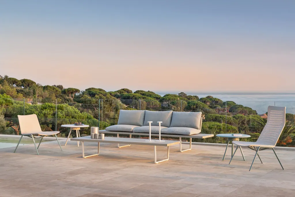 Zwischen Natur und Technologie. Mit „greifbarem“ Ergebnis. Das pulverbeschichtete Aluminium ist beständig gegen Regen, Wind, Kälte und den Wechsel der Jahreszeiten. Die umfassende Kollektion besticht mit robusten, schlichten Formen, die an moderne Interpretationen klassischer Holzbänke denken lassen. Bei Bedarf können die Sofas, Bänke und Chaiselongues der Serie Orizon außerdem mit bequemen outdoortauglichen Kissen ausgestattet werden, um herrlich gemütliche und einladende „Freiluft-Wohnzimmer“ zu gestalten.