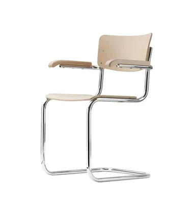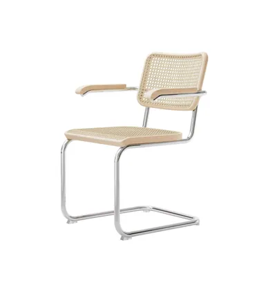 Die S 64 Kollektion von Thonet, ebenfalls ein Entwurf von Marcel Breuer, kombiniert die ikonische Freischwinger-Form des S 32 mit zusätzlichen Armlehnen für maximalen Komfort. Das Stahlrohrgestell in Verbindung mit Sitz und Rücken aus Bugholz oder Wiener Geflecht verleiht dem S 64 eine zeitlose Eleganz und eine spürbare Leichtigkeit. Der Stuhl passt perfekt in private Wohnräume, Konferenzsäle oder öffentliche Bereiche und ist dank seines durchdachten Designs ein Symbol für Bauhaus-Ästhetik und handwerkliche Präzision.